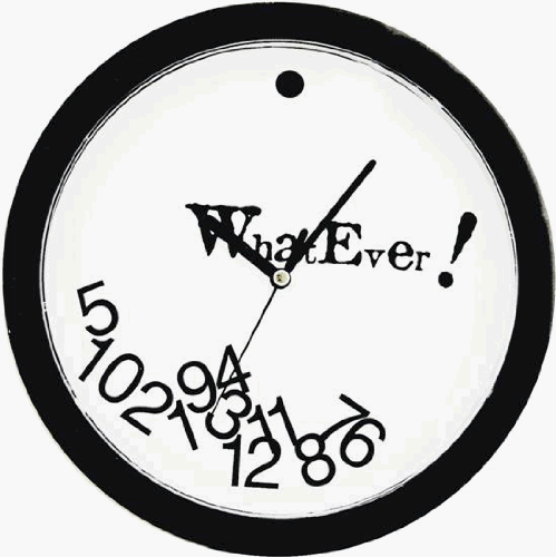 This Whatever Clock is a hilarious reminder not to take your schedule too seriously! The numbers have given up on their usual positions and fallen into a pile at the bottom, leaving only the word "Whatever!" across the center. And whatever-o'clock is never too late. So when you're worried about this appointment or that deadline, just take a deep breath and say, "Whatever!" The Whatever Clock is also a fun and functional gift, equally funny for punctual people and late people! time.