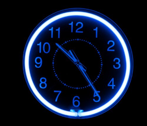 This product features a 11" neon wall clock with plastic frame. The clock is powered by 1 AA battery. To have the neon effect, simply plug in the adapter.