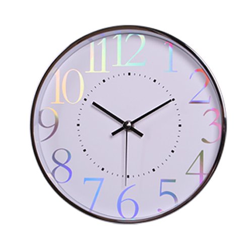 Adorn any room with this Metallic Shimmer Non-Ticking Silent Wall Clock! The metallic numerals and silver rim contrast with the simple background for clear view and because it has all three hands and increments, this clock will give you an accurate read on time down to the second so you don't need to second-guess yourself. The clock's simplicity in design offers quick and easy installation. All you have to do is insert a single AA battery (included), and the back slot makes it easy to hang. Another great thing about this clock is that it's even easier to maintain! It's super easy to clean because the clock is cased with a flat lens that covers and protects the face from dust and debris. The clock is silent so you don't need to worry about the constant ticking of regular clocks when you need some peace and quiet to concentrate on your work or enjoy a full night of undisturbed sleep. Add some sheen to your room with a clock that's both practical and stylish. (Colors shown in pictures may slightly differ from actual product due to lighting and color settings.)