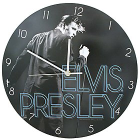 For more than 50-year, Vandor has created hip and functional products for fans of all ages. We pride ourselves on setting new standards in the design and marketing of licensed consumer goods featuring today's most legendary entertainment properties, including Elvis Presley. Elvis' immortal legacy was born from his unmistakable voice, charismatic showmanship, and revolutionary fusion of country, blues, gospel, and R and B music. Virtually every rock star from the '50s onward is directly or indirectly indebted to Elvis both for his dance moves and for his embodiment of the rock ‘n roll persona. Elvis truly was The King of Rock 'n' Roll. The Elvis Presley Wall Clock is the perfect gift for Elvis fans. This quartz movement wood cordless wall clock operates on a single AA battery - no cord necessary. It features a classic, photo quality image of the legendary performer. It is packaged in an open face color box for an attractive presentation. Vandor has been making retro cool since 1957. Legends live on at Vandor.