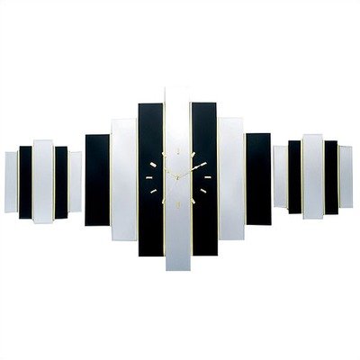 Set a contemporary vibe in your home with this Mirror Wall Clock Set. The clock features three clear strips and four black strips interphase, with a clear diamond clock in the center Two side mirrors features three clear strips with two black strips in a smaller scale. Gold accent provides a modern style to any room. Clock size 28-inch height by 30-inch weight by 1-inch depth, side mirror measures 15-inch height by 14-inch weight by 1-inch depth Clock requires one AA battery (not included)Center clock size 28-inch heigth by 30-inch width by 1-inch Deep Side Mirror Size15-inch height by 14-inch width by 1-inch Deep.