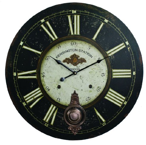There is an opening on the bottom of the clock that displays the pendulum swinging side to side.