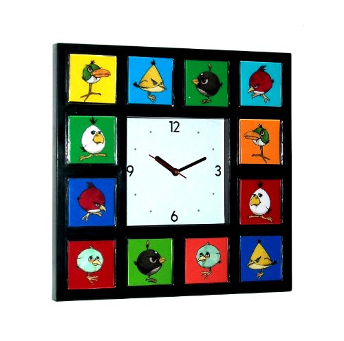 The clock face is surrounded by 12 rich full color images of Angry Birds in no particular order. Each individual photo is acrylic encased for protection. This is for the true collector.
