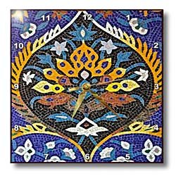 Black White Gold and Blue Lotus Motif Glass Mosaic Tile Print - 10x10 Wall Clock super united states