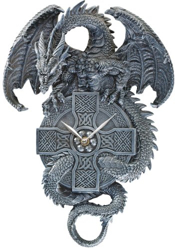 It s dragon time! With its powerful wings spread wide, artist Liam Manchester's dragon wraps his spiked tail around a striking stone gray, designer resin Celtic clock that features metal hands. Intricately sculpted, this modern, quartz-movement clock is another Toscano exclusive! Accepts your single AA battery.