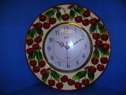 CHERRY 3-D Large Ceramic Wall Clock Cherries *BRAND NEW* good usa