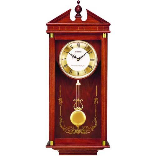 Seiko Wall Pendulum Clock Dark Brown Solid Oak Case super usa