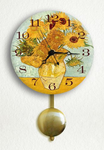 Vase with 12 Sunflowers by van Gogh 6" Pendulum Wall Clock best us