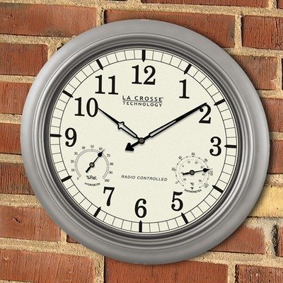 This 18" clock features both an analog thermometer and hygrometer on its face. You may want to mount this stylish clock indoors, but please keep in mind it works best outdoors in a shaded location. This is an atomic clock, which means it never needs to be set! Automatically updates for daylight savings time! This metal cased clock features a striking pewter finish. Assembly level/degree of difficulty: No Assembly Required.