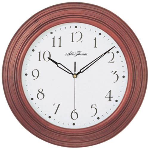 Seth Thomas Acadia White Dial Stained Brown Solid Wood Case with Quartz Wall Clock super united states